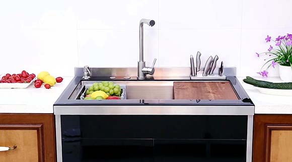 集成水槽將凈水處理系統(tǒng)、熱水供應(yīng)系統(tǒng)、垃圾處理系統(tǒng),刀架、皂液器、菜板、瀝水籃等功能進(jìn)行人性化設(shè)計(jì),巧妙地和水槽結(jié)合在一起,既解決了傳統(tǒng)水槽空間使用率低的難題,而且整體布局科學(xué)合理,外型小巧精致,難怪集成水槽會(huì)成為廚房新寵。集成水槽價(jià)格如何?集成水槽的缺點(diǎn)有哪些?下面就一起了解集成水槽知識(shí)百科,感受廚房“槽”流。