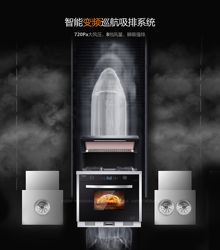 經過多年的時間和技術沉淀,廚電十大品牌,集成灶十大品牌科恩電器一直秉承著“精湛科技·專注高端”的品牌定位,不斷聚焦匠心品質、原創設計以及智造技術,多年來呈現出許多優質產品,成就行業典范,實現產品升級。比如科恩智能蒸烤消一體集成灶搭載≥720Pa大風壓智能巡航系統,高達21m3/min爆吸黑科技技術,更深層次地解決了控煙、排煙問題。