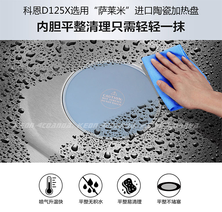 想要蒸出可口美味的菜,蒸箱就需要滿足“溫度高、蒸汽足”的條件,集成灶十大品牌、廚電行業(yè)十大品牌科恩蒸烤消一體集成灶采用噴氣式4D立體蒸技術(shù),噴氣升溫快,360°立體循環(huán)蒸汽環(huán)繞,墻體溫度急速升高,熱風(fēng)由內(nèi)而外,迅速加熱內(nèi)部難熟組織,蒸汽自外向內(nèi),將食物層層包裹,全方位滲透食材,激活新鮮口感,鎖住營養(yǎng)與美味,完美解決普通蒸箱蒸制食材太慢、營養(yǎng)流失、味道不鮮美等問題。另外,底部加熱盤采用進(jìn)口陶瓷“薩萊米”技術(shù),平整不積水、易清理、不堵塞,只需輕輕一擦就能潔凈。