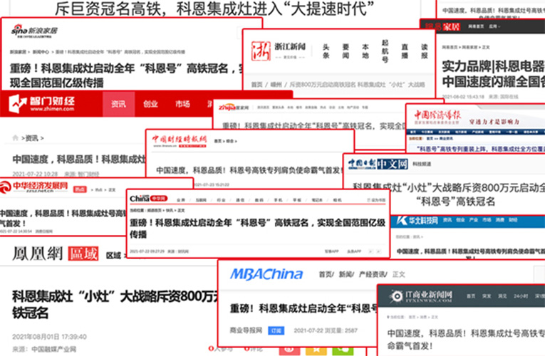 此番科恩集成灶斥資800萬投放高鐵列車,整合全網主流媒體進行針對性內容營銷,以創意廣告和推廣內容,360°全方位品牌曝光,進一步樹立品牌形象,擴大品牌影響力。