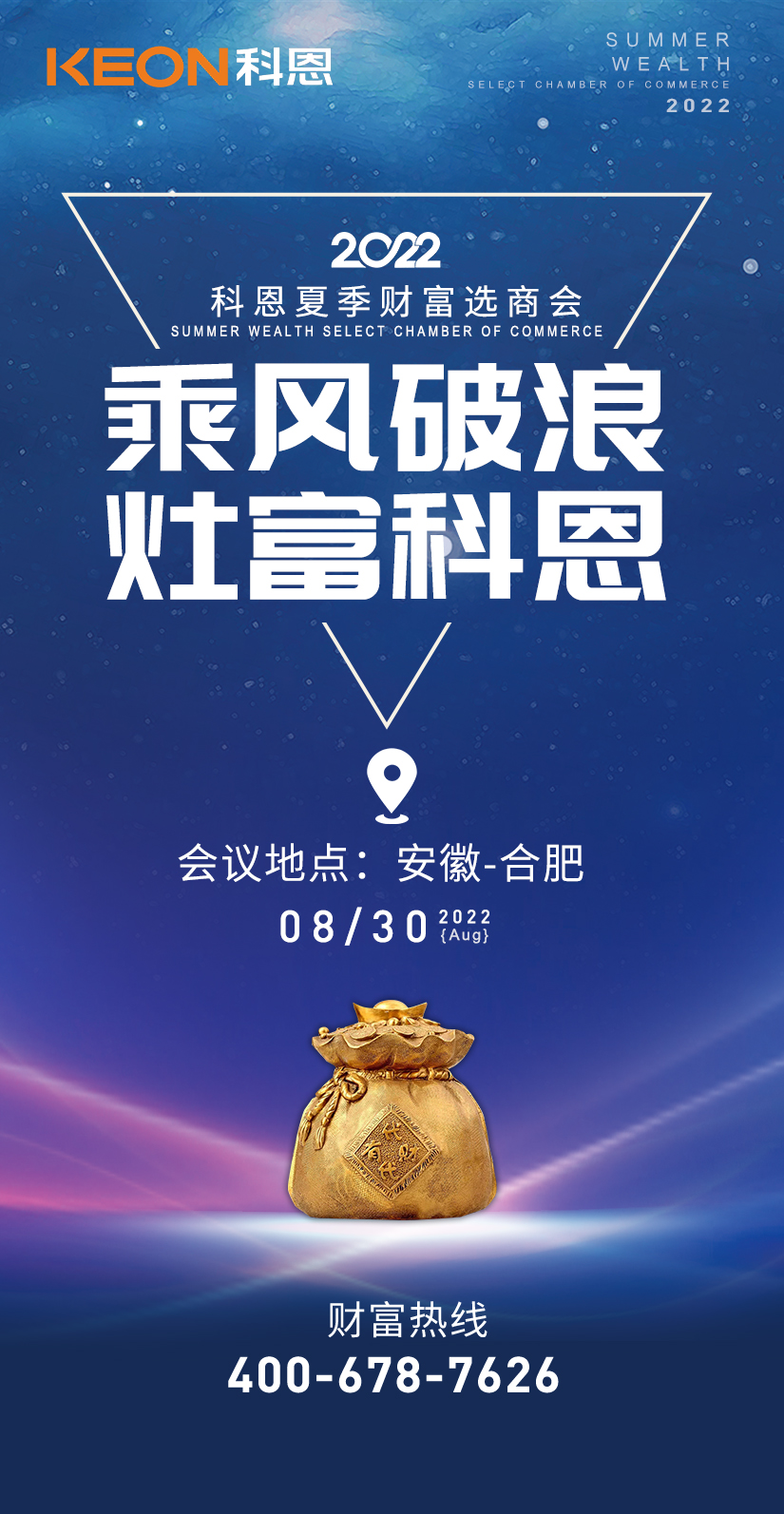 【乘風破浪,灶富科恩—2022科恩夏季財富選商會】安徽合肥站將于8月30日盛大舉行,本次大會力邀多位行業大咖,資深業內人士,共同探討廚電產業的發展之路機遇和挑戰,見證廚電行業的廣闊前景!在這個輝煌的時刻,我們誠摯邀請您出席本次大會,共襄盛舉,再創佳話 !