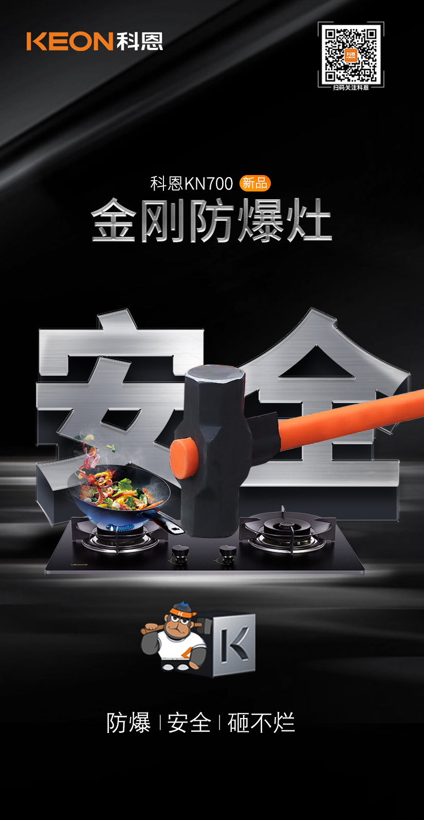 如何讓國民廚房更安全?科恩研發(fā)了金剛防爆灶,采用硅碳合金板,不僅抗沖擊更可耐高溫1500℃,為國人廚房生活樹立起堅(jiān)固的安全屏障!
