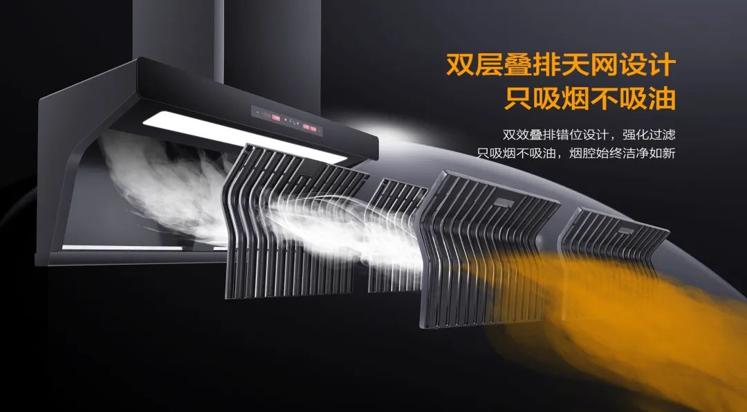 雙效疊排天網(wǎng)搭配6重油煙分離,這樣的煙機(jī)才能做到免清洗,更省心!