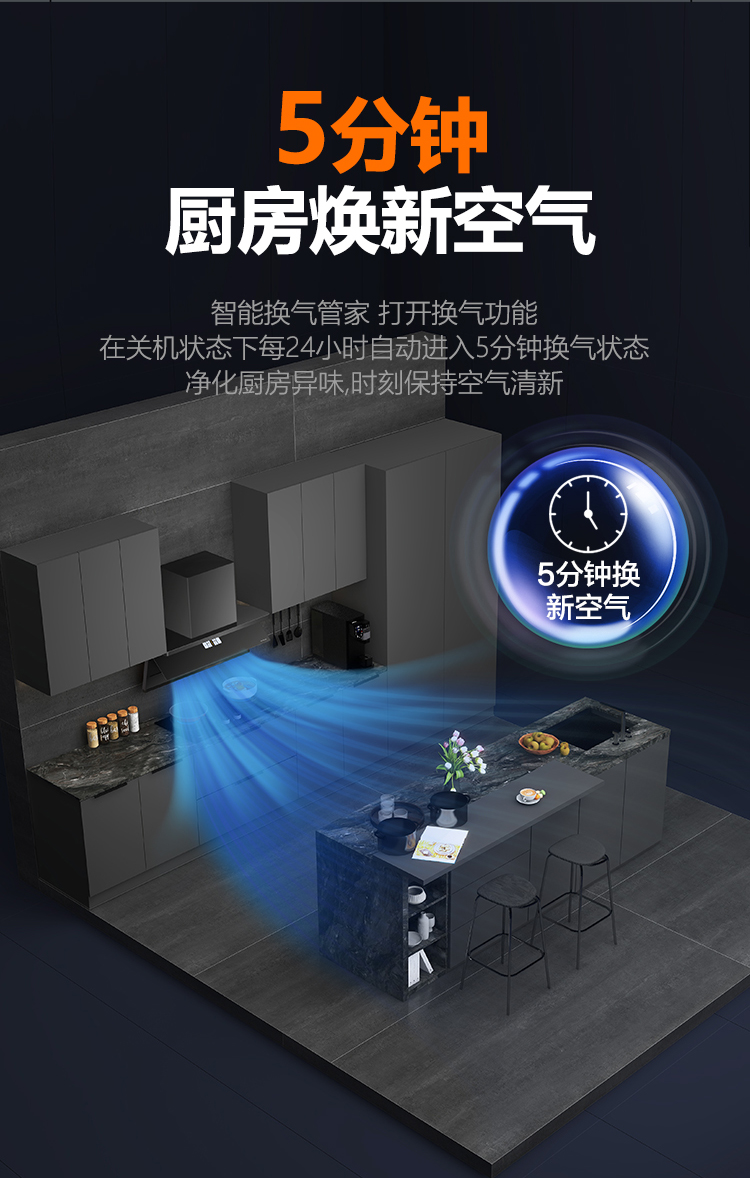 7520搭載自清潔自換氣系統,貼心守護健康。智能換氣管家,24 小時自動換氣,凈化廚房異味,保持空氣清新。智旋清洗甩掉油污,延長煙機使用壽命,3 分鐘自動延時除盡烹后余煙,搭配大容量油杯,無需頻繁傾倒??贫髯冾l大吸力煙機7520,換新廚房無負擔!