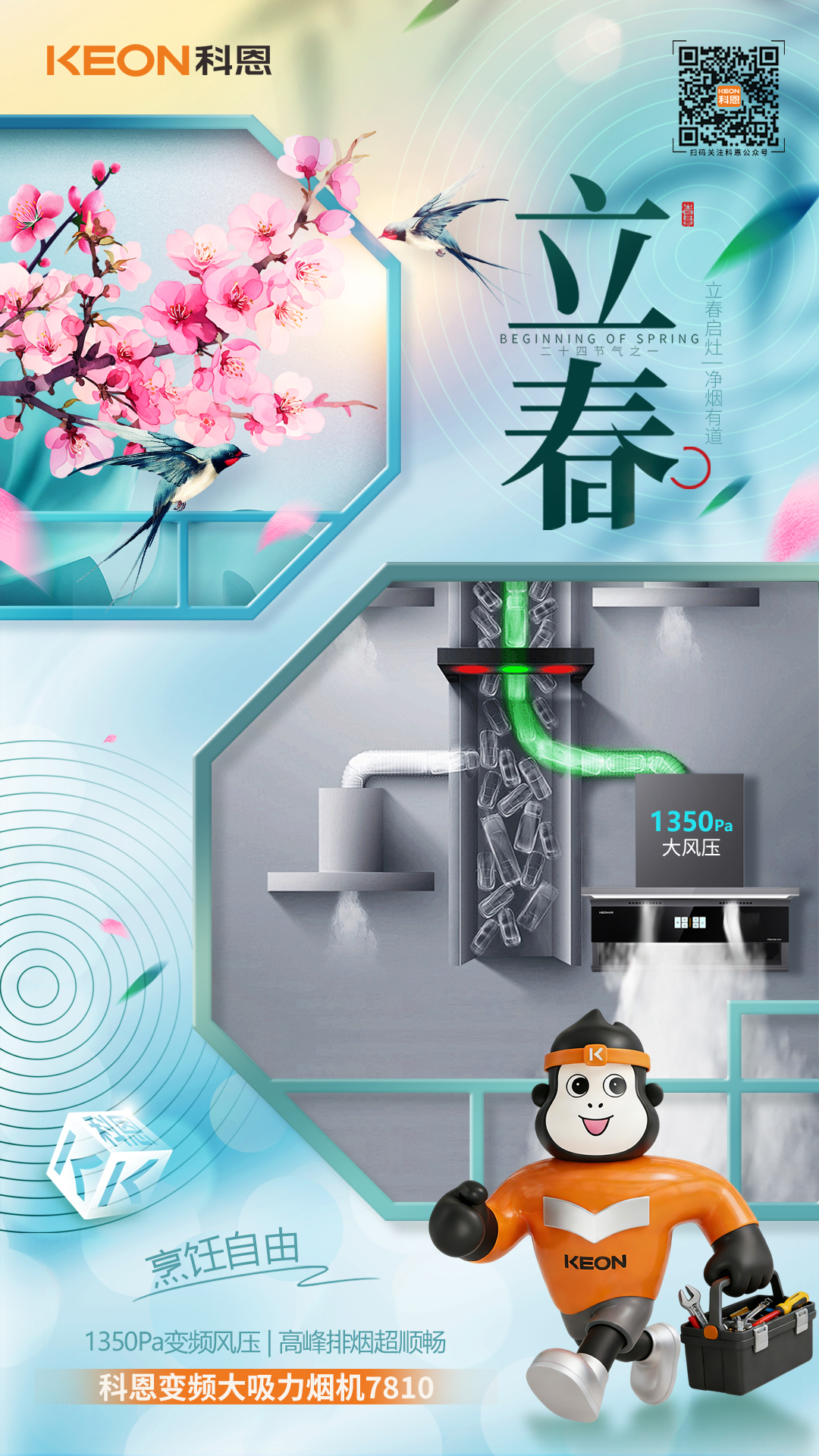 立春啟灶,凈煙有道。新綠破寒時,廚香伴清歡,科恩煙機 7810,以立春煥新之姿,重構「無煙廚房」的烹飪美學,讓每一次掌勺都成為自由呼吸的享受。