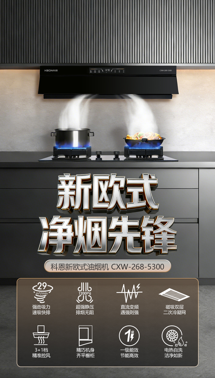 春序新生・凈煙入畫!科恩新歐式凈煙先鋒煙機(jī)5300新品來襲!