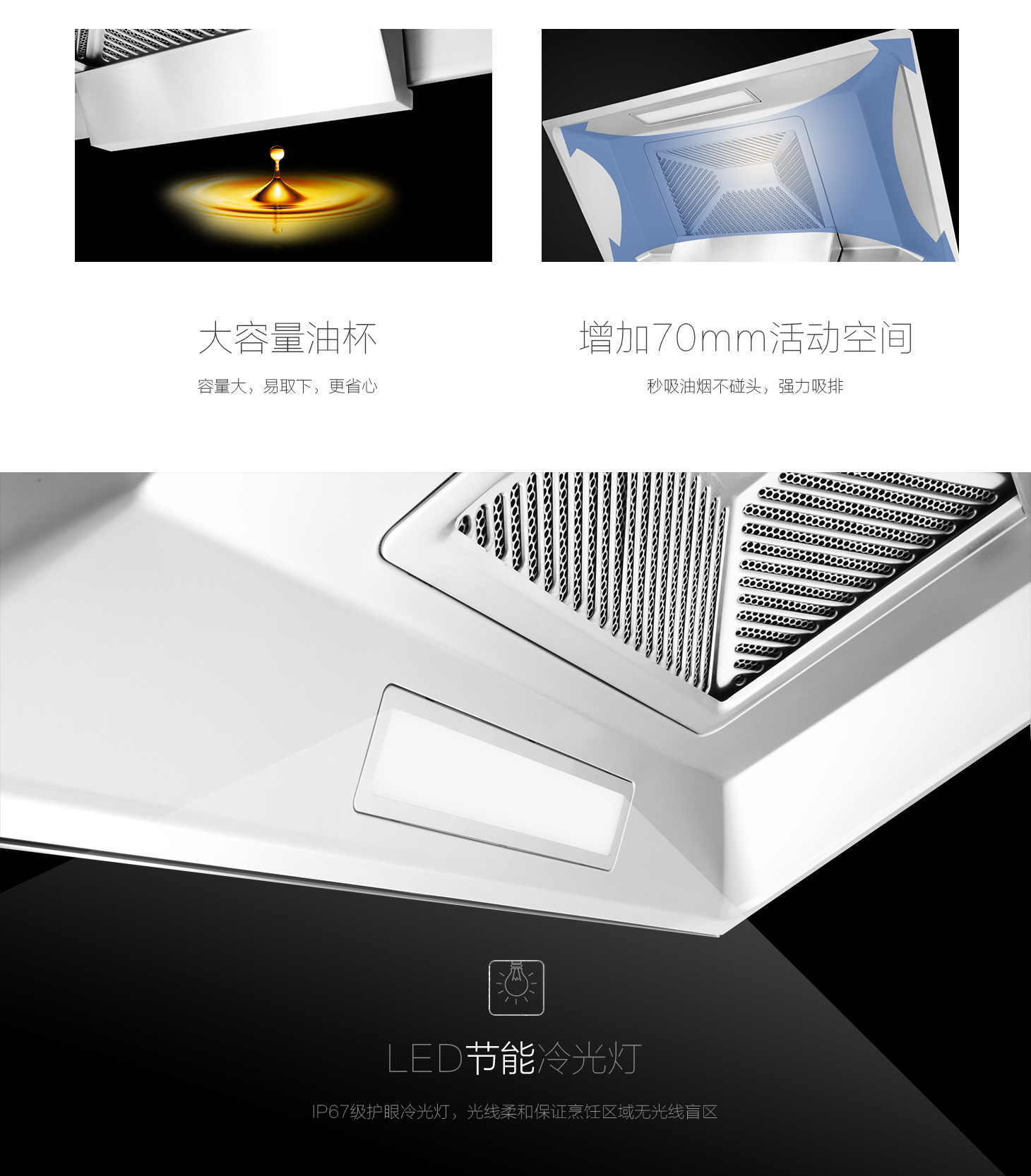 - 增加70mm活動空間,秒吸油煙不碰頭。
