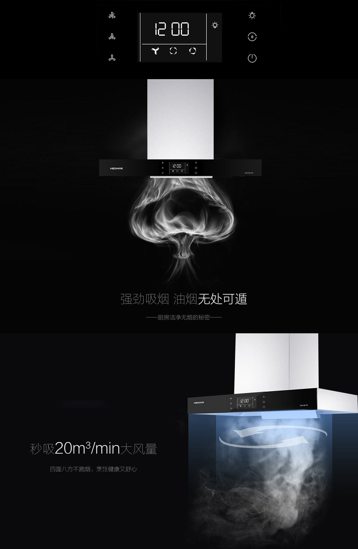 - 大風壓,杜絕烹飪高峰期油煙倒灌。