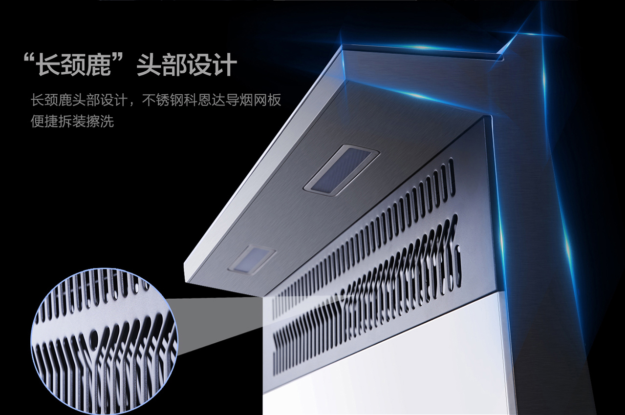 - 搭載可提拉式科恩達(dá)304不銹鋼導(dǎo)煙網(wǎng)板,拆卸方便。