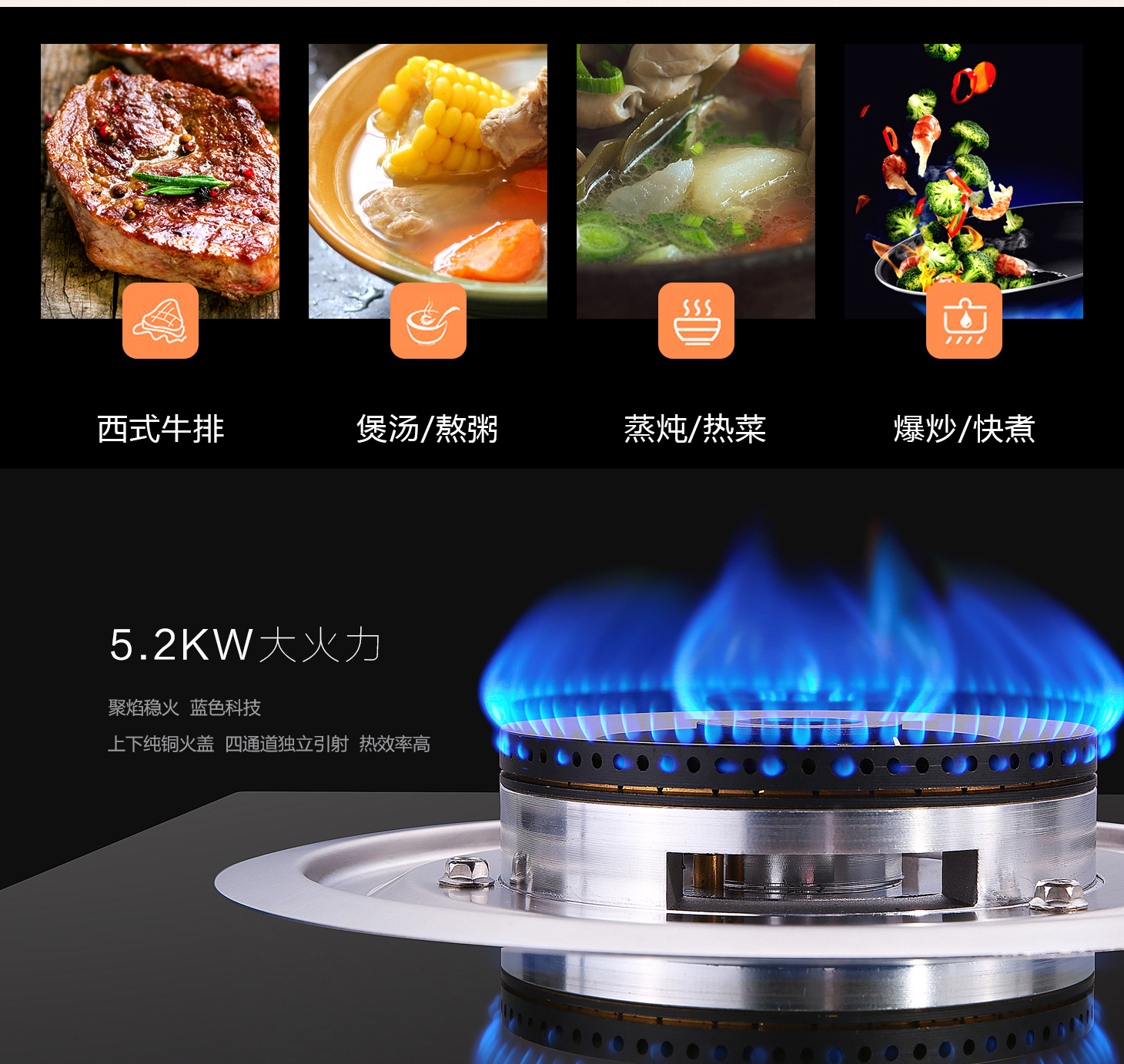 - 5.2kW大火力猛火爆炒,有實力更出眾