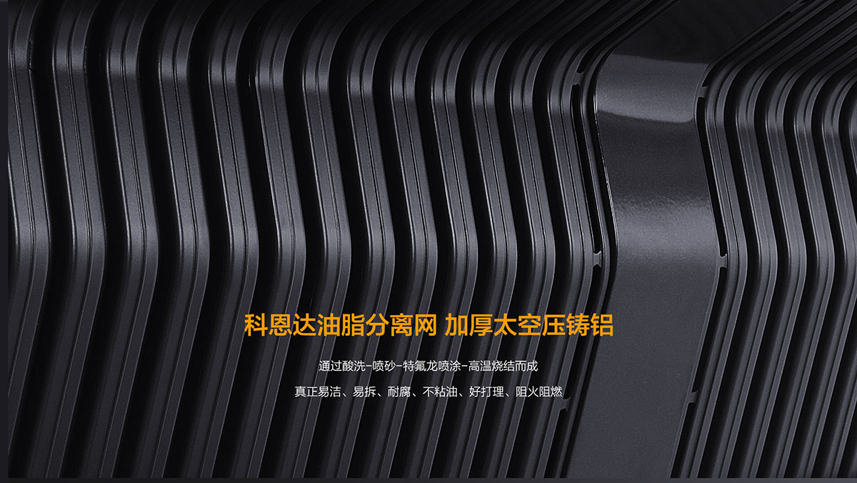 - 科恩達(dá)油脂分離網(wǎng),加厚太空壓鑄鋁材質(zhì),特氟龍易潔易洗易拆工藝
