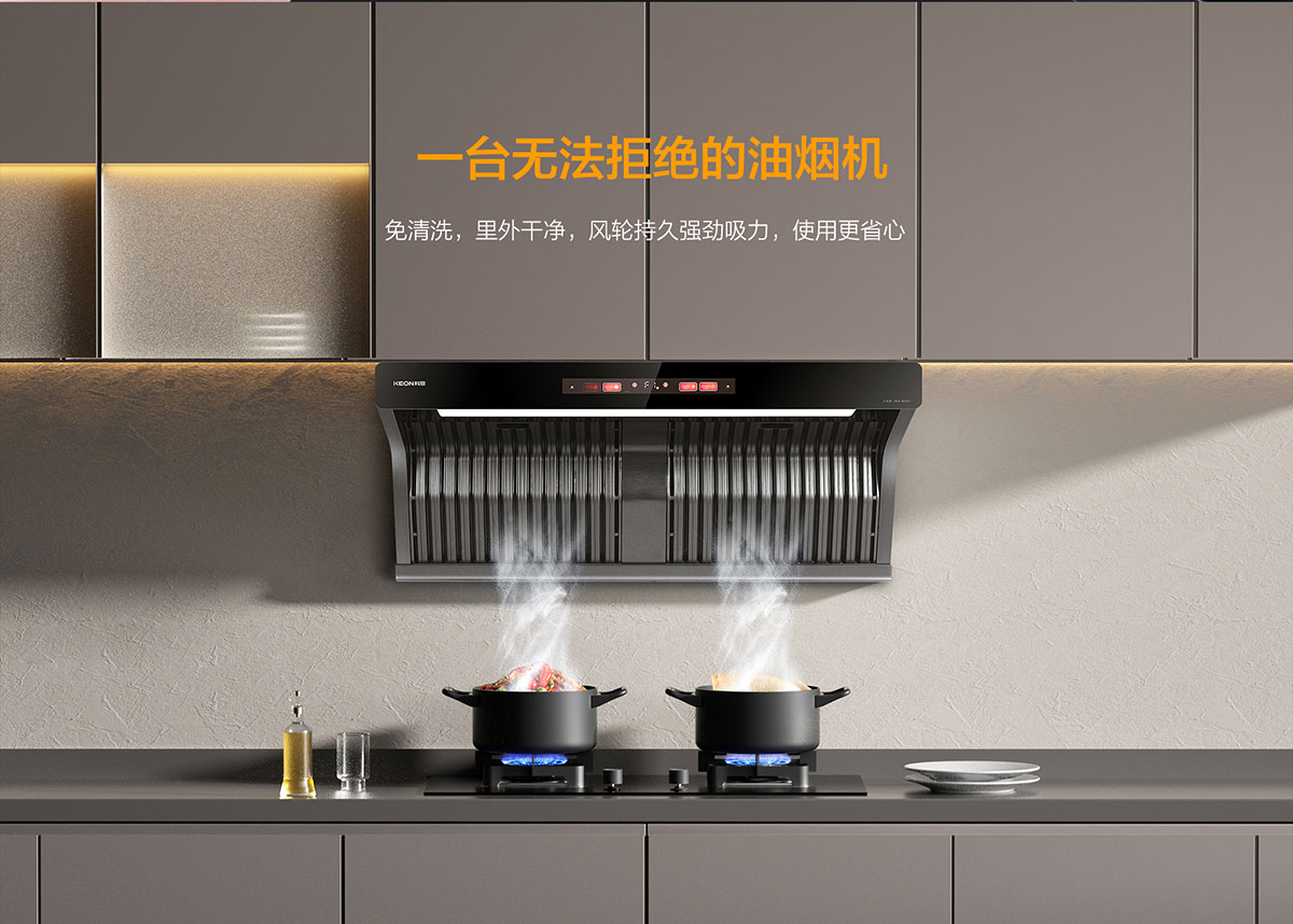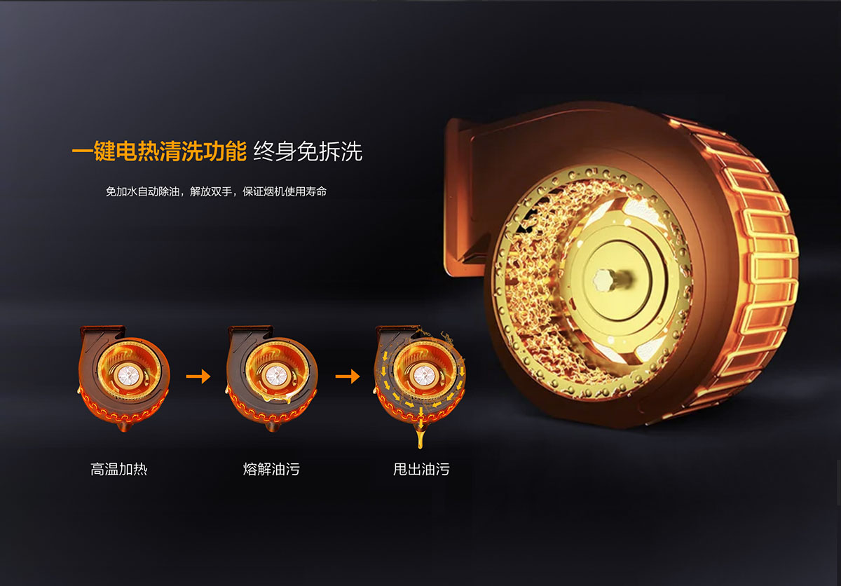 - 一鍵電熱智清洗,終身免拆洗,葉輪風(fēng)柜壁自動(dòng)除油,解放雙手