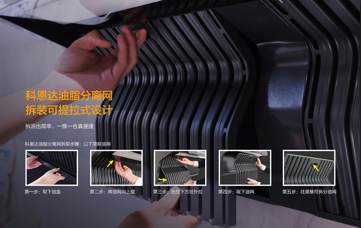 - 科恩達(dá)油脂分離網(wǎng)拆裝可提拉式設(shè)計(jì),拆洗也簡(jiǎn)單,一推一合真便捷