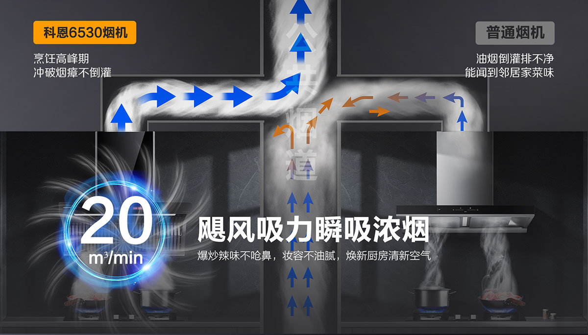 - 20m3/min颶風(fēng)吸力,爆炒不嗆鼻,煥新廚房更潔凈