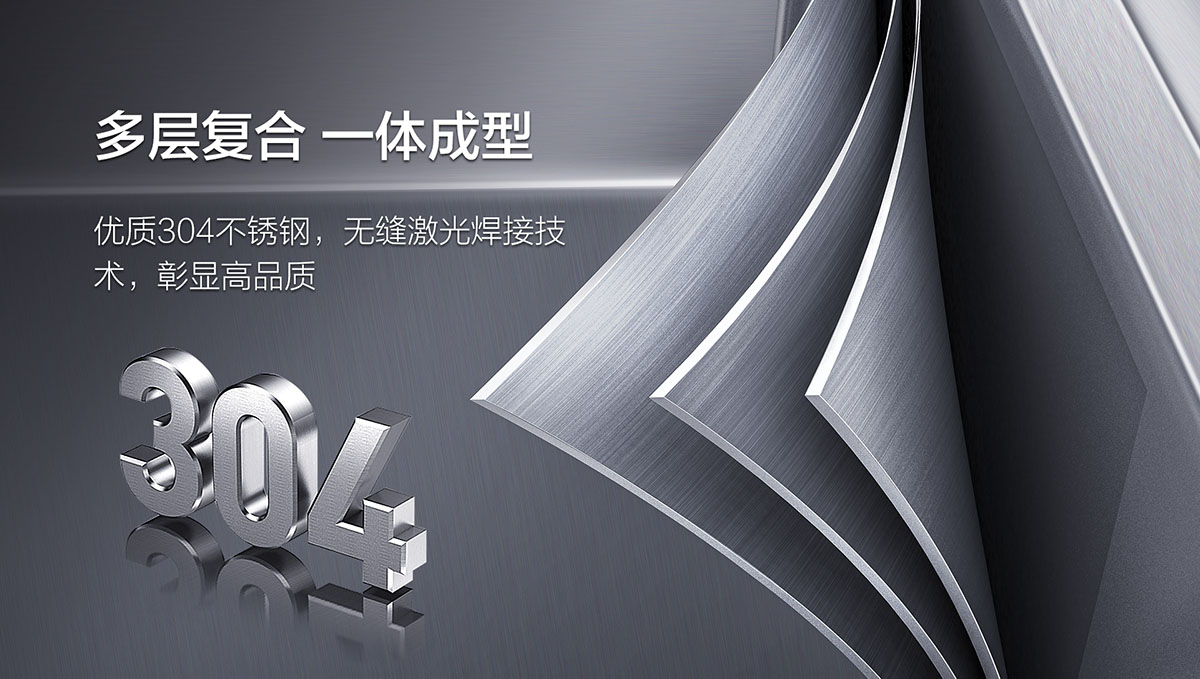 - 優質304不銹鋼,無縫激光焊接,多層復合 一體成型