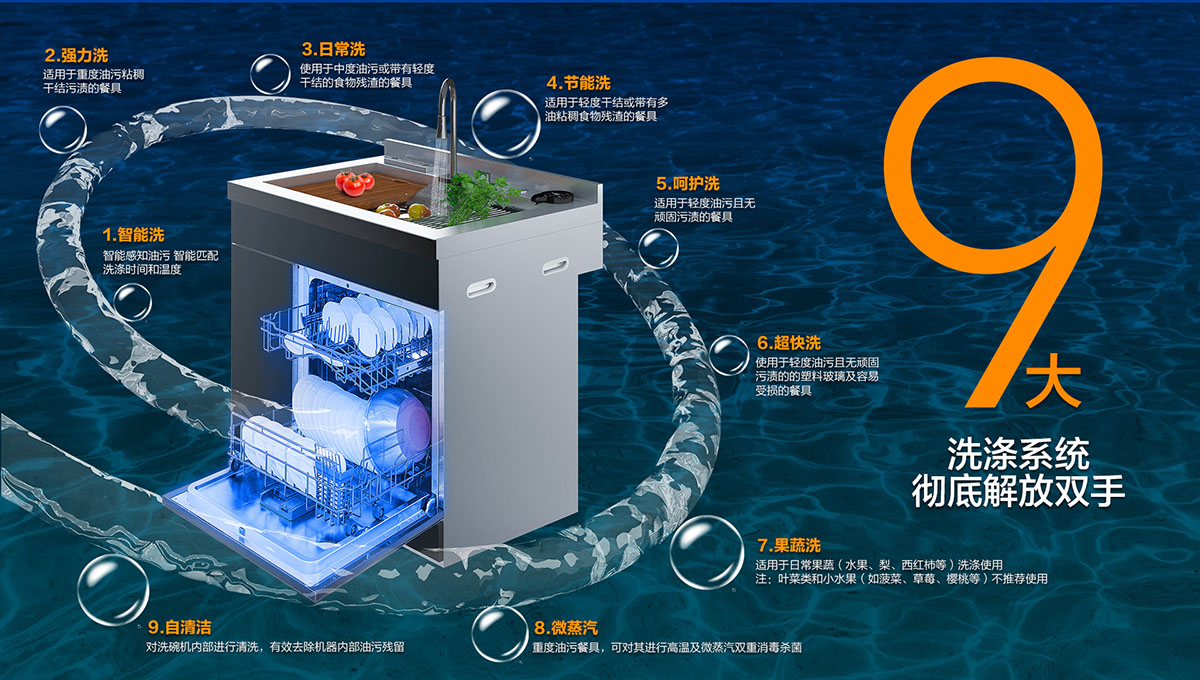 - 大洗滌系統,滿足洗碗、洗果蔬各種需求