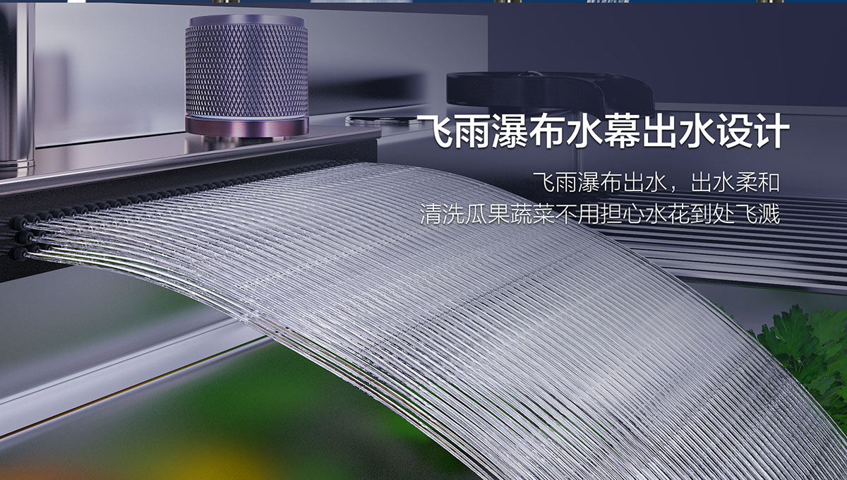 - 飛雨瀑布水幕,快洗蔬菜果皮內部及表皮的泥垢、農藥殘留