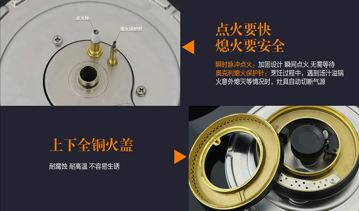氣 源:天然氣+人工燃?xì)?液化氣材 質(zhì):防爆鋼化玻璃面板、一氣一電灶具、猛火直噴