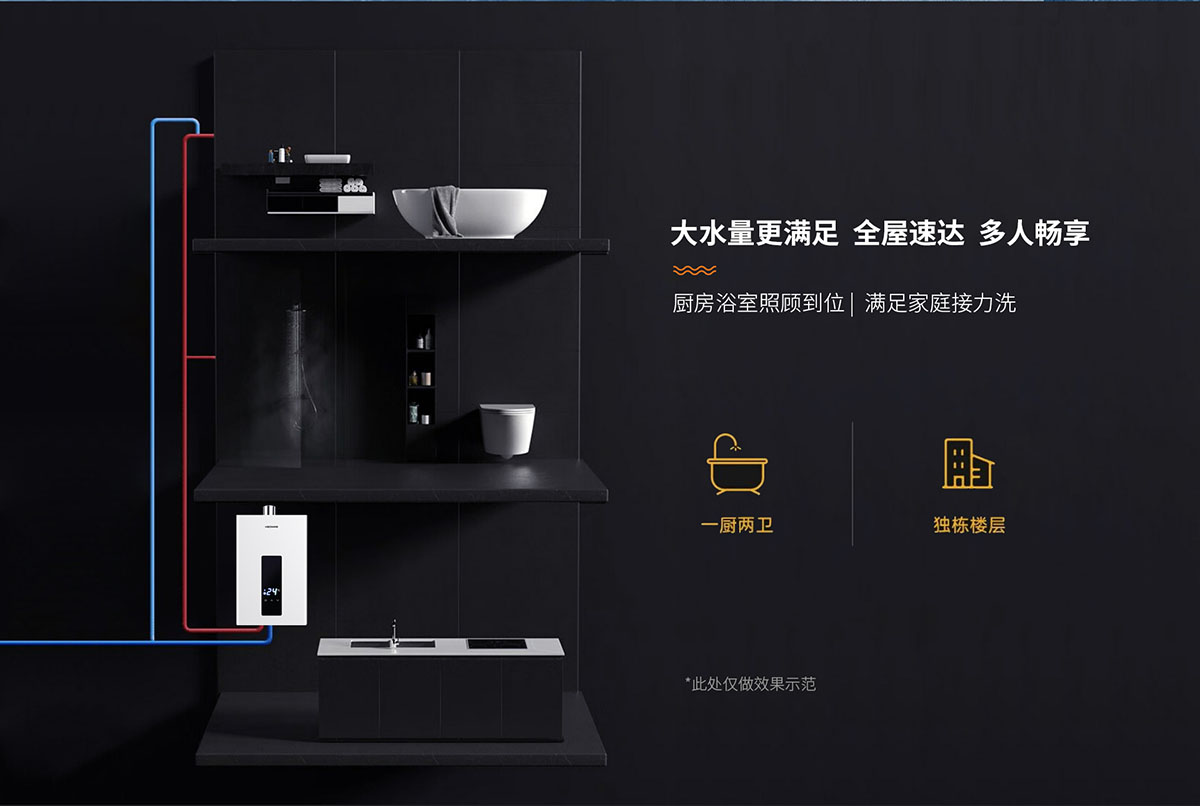 - 分段燃燒技術,水溫調節(jié)范圍大,水溫調節(jié)速度更快