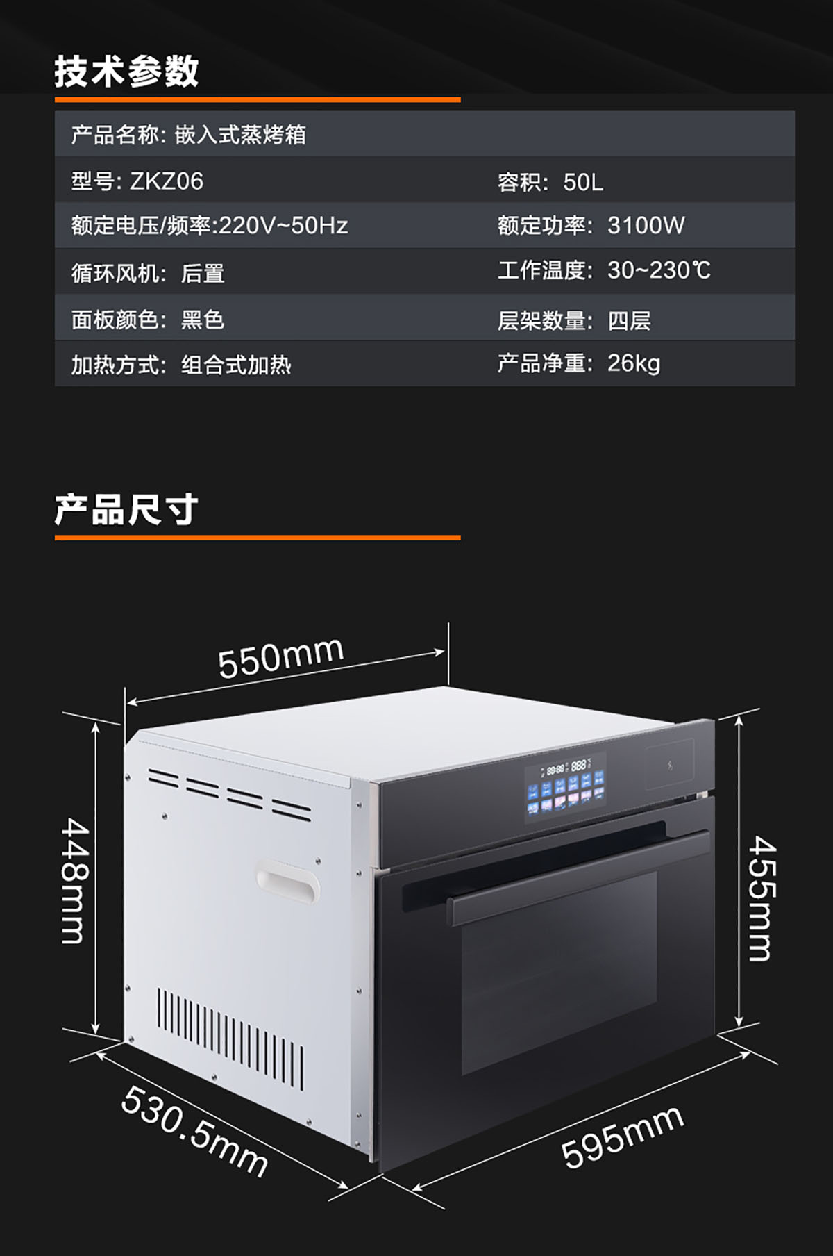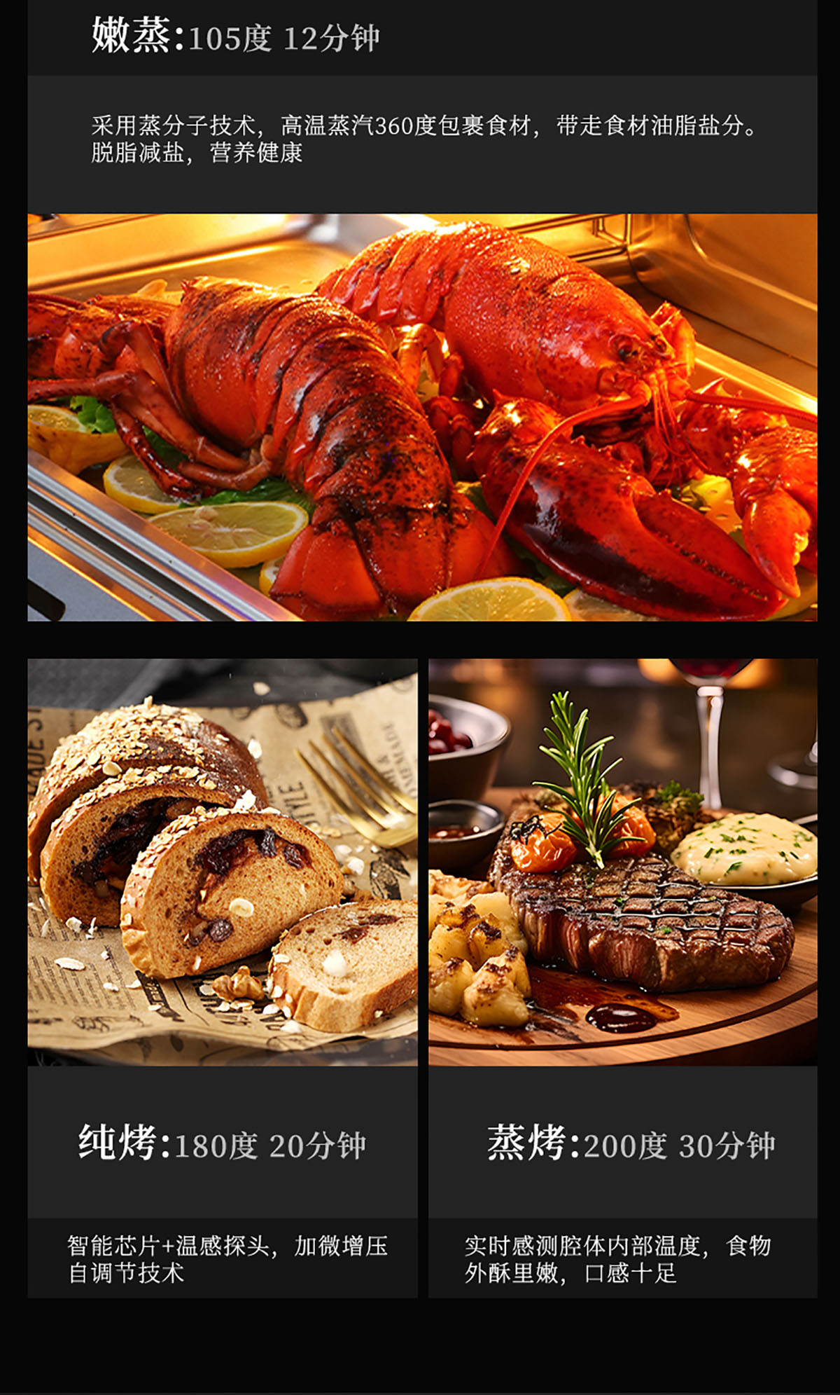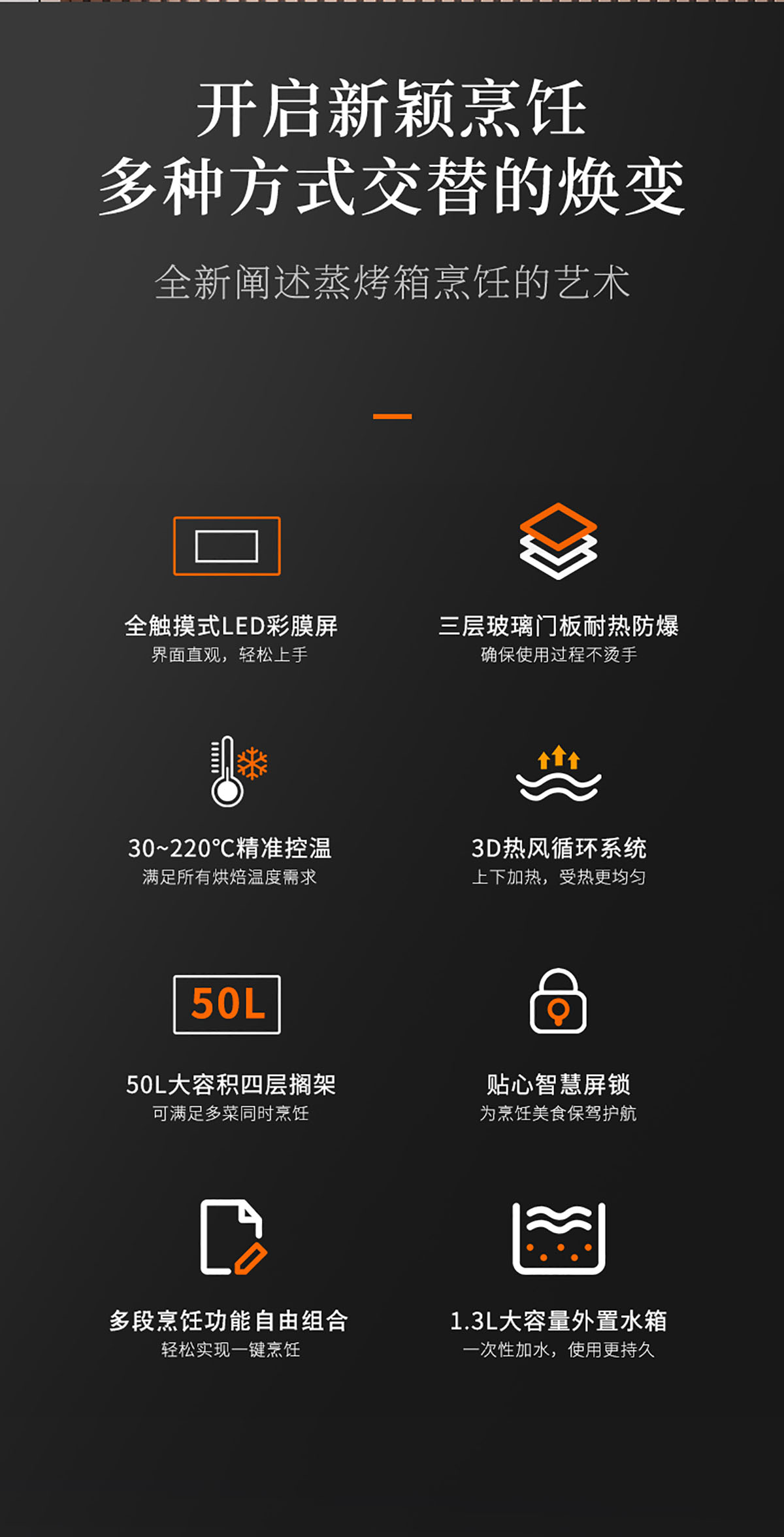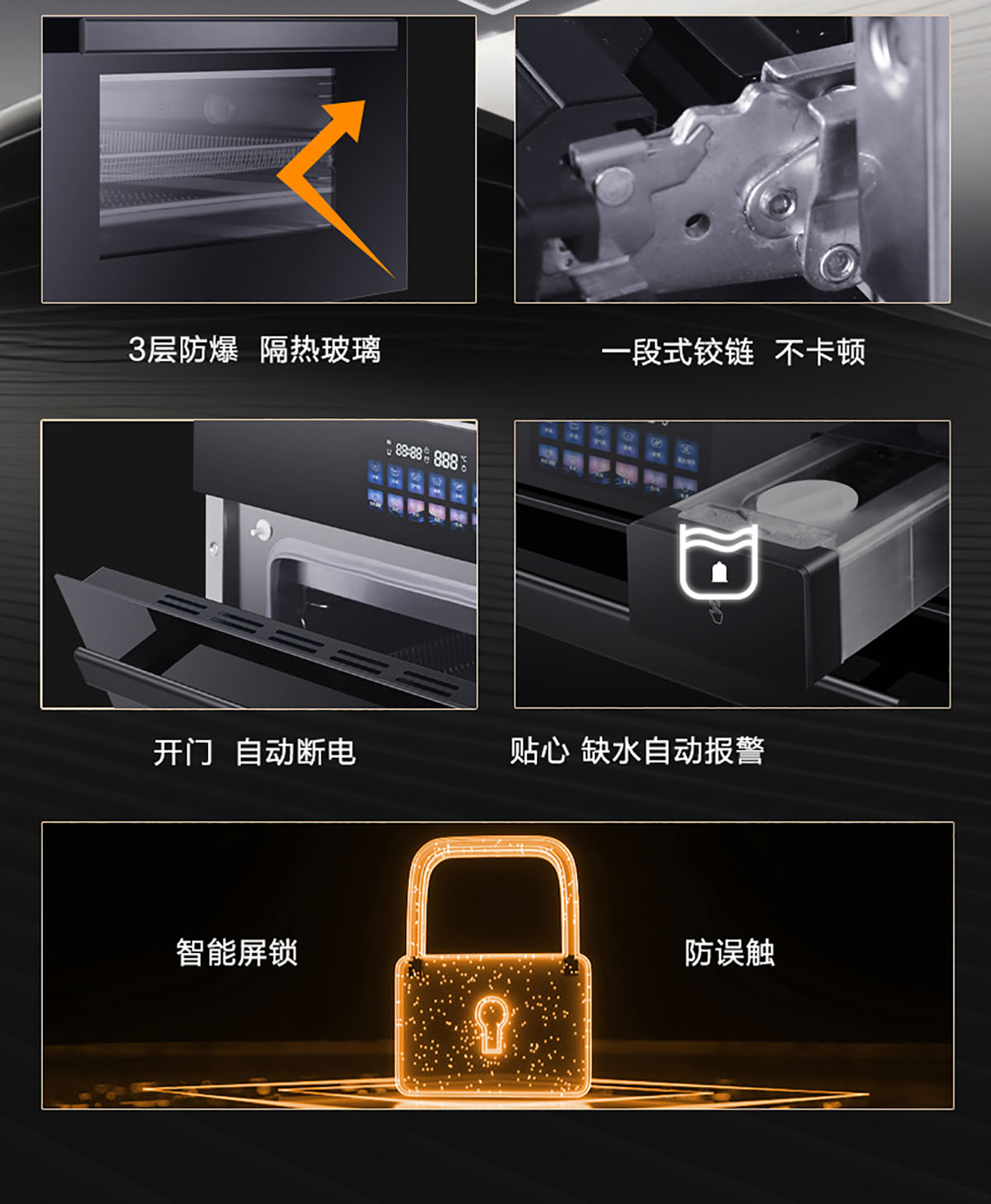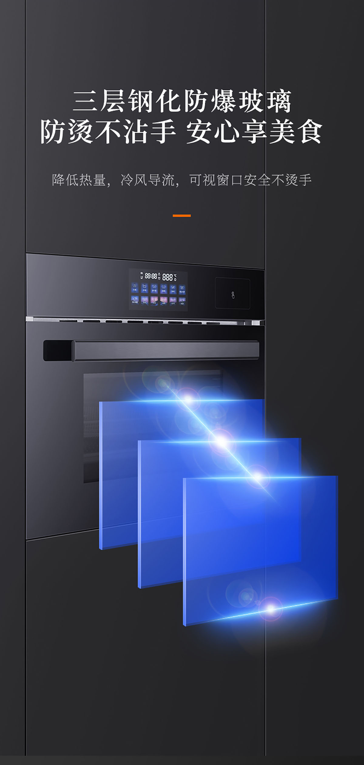 - 三層玻璃門板耐熱防爆,確保使用過程不燙手