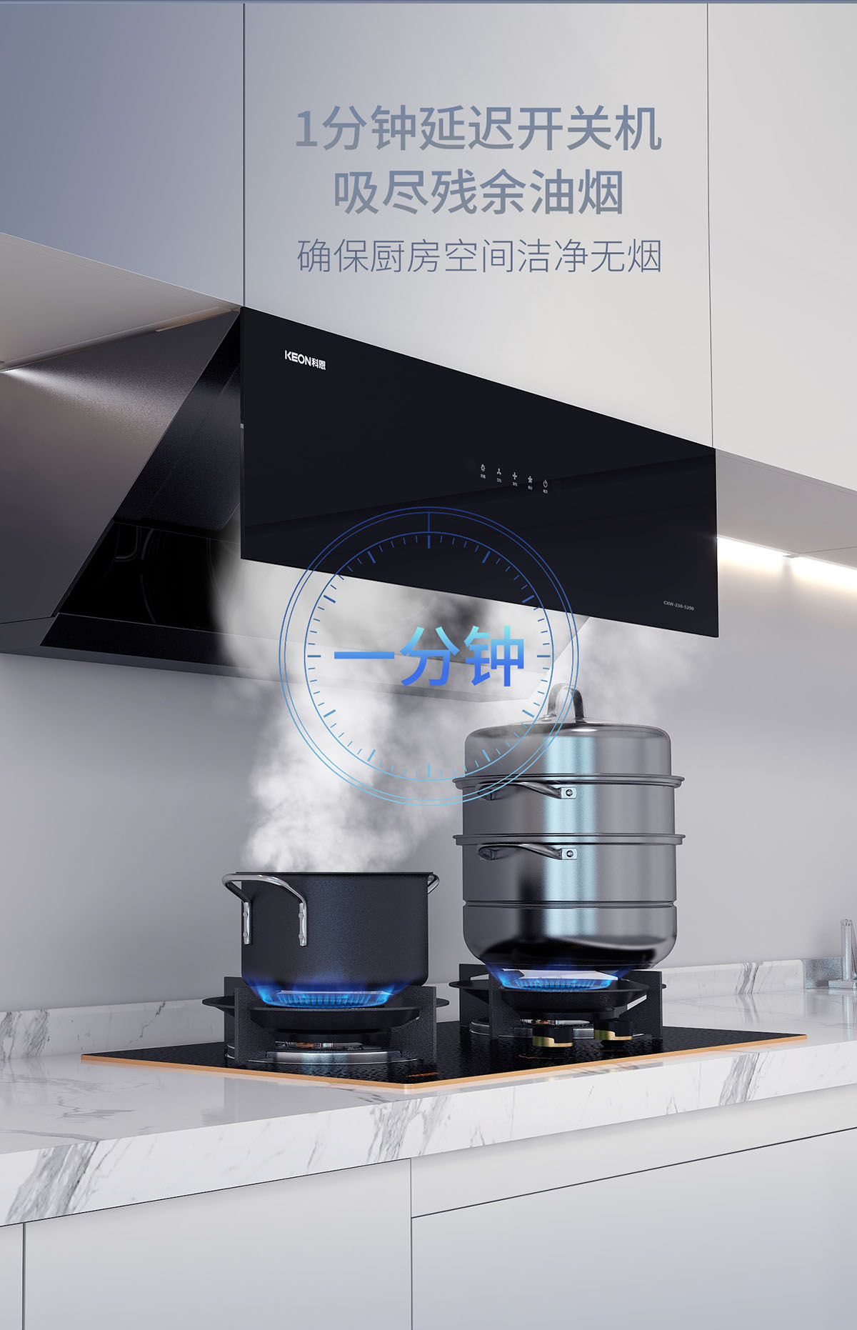 - 1分鐘延時關機,吸盡烹后殘余油煙