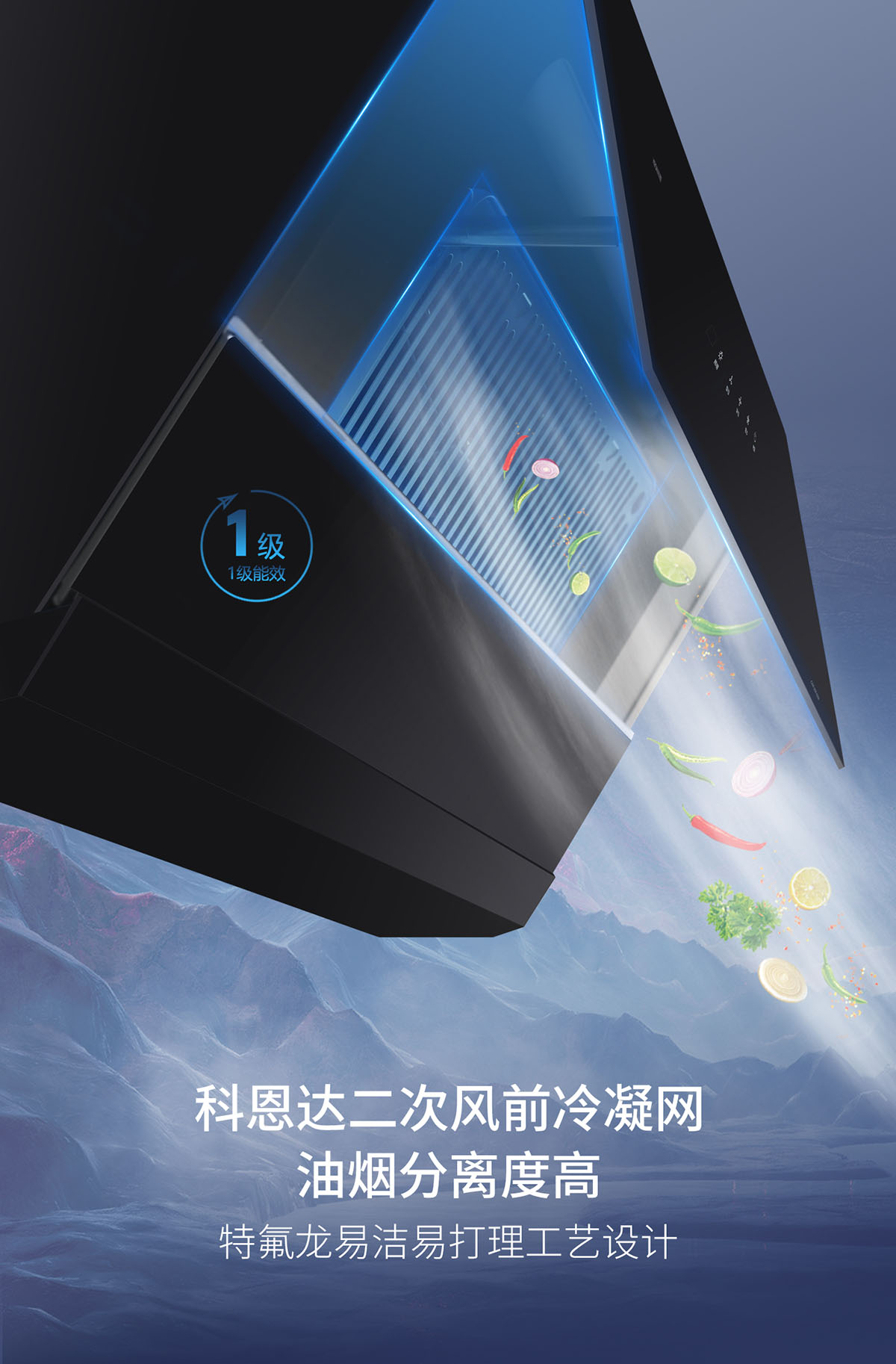 - 23m³/min颶風吸力,瞬吸油煙,打造無煙廚房