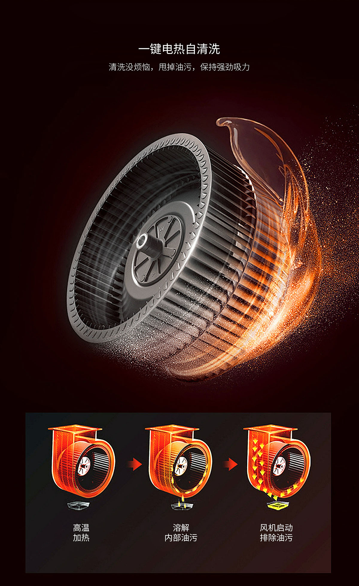 - 電熱自清洗,甩掉油污,保持強勁吸力