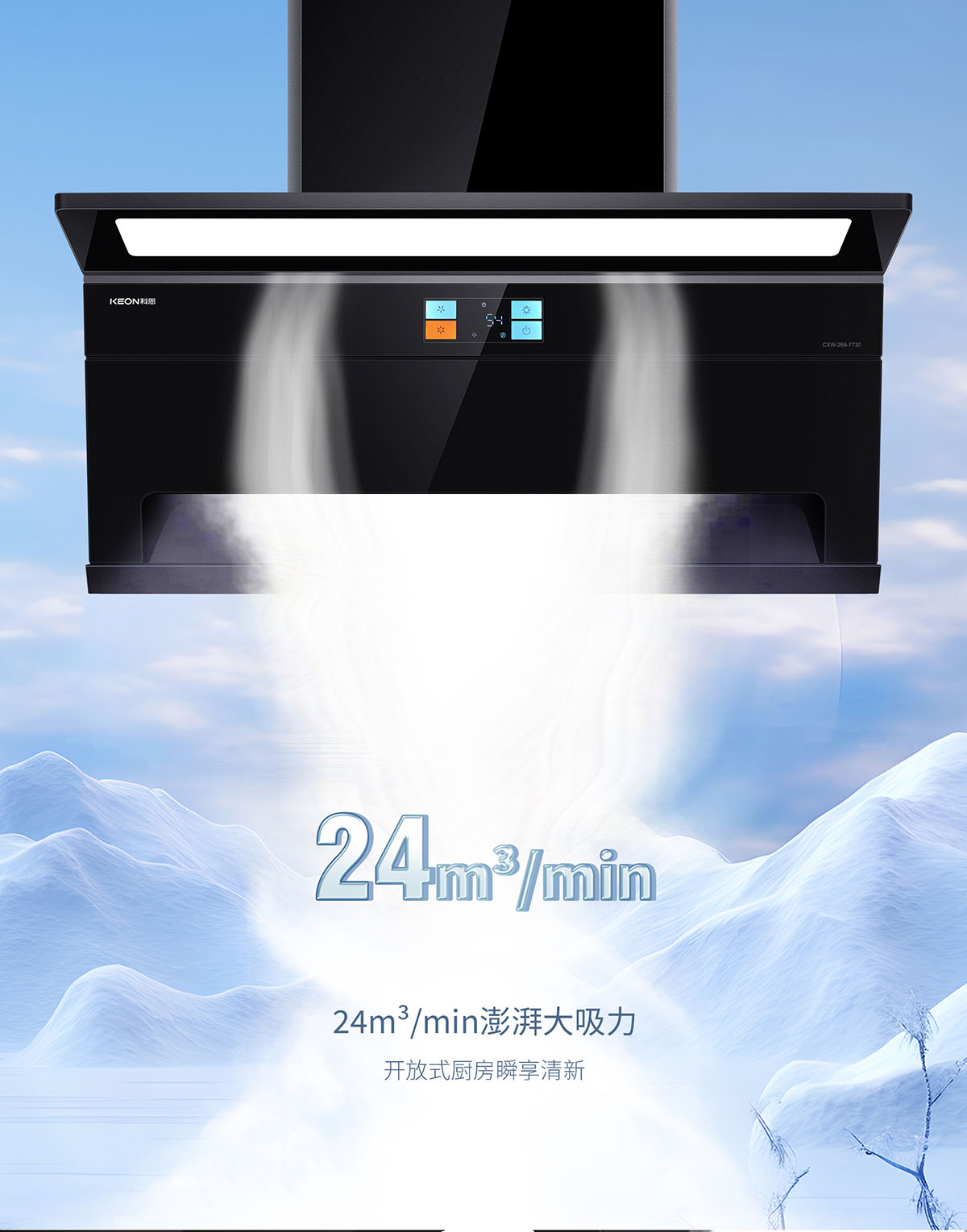 - 24m³/min澎湃大吸力,無懼重煙,凈煙實力派
