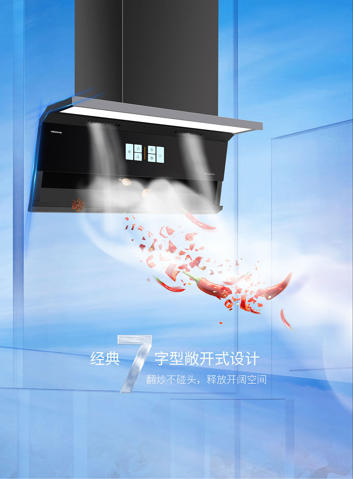 - 經(jīng)典7字型敞開式設計,釋放空間,翻炒不碰頭