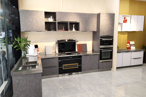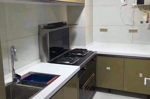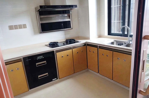 科恩湖南經(jīng)銷商提供的T55煙機(jī)和不銹鋼水槽廚房實(shí)景